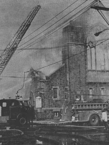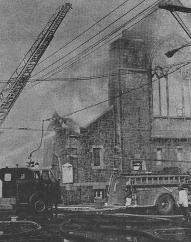 Tabernacle's youth programs began to grow once more. Ms. Waid and the Rev. Tarbet together led the congregation through a fascinating period of liturgical renewal. A new worship style for a new era was being built. In 1969 just as things were going so well, the grand gothic church building was utterly destroyed by a fire.