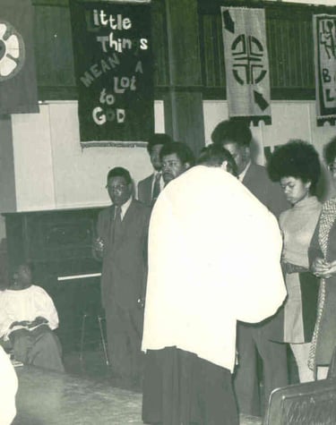 The Rev. James Gunther was called as Assistant Pastor in 1959 to help in this new ministry. He remained with us for nine months. In 1960, the Rev. William Barrett was called as Assistant Pastor to help continue the effort to make Tabernacle's ministry inclusive. And yet the content of the ministry remained the same; serving the people of our neighborhood with the Word of God and the Holy Sacraments. Pastor Barrett stayed with us until 1966. That same year Ms. Elizabeth Waid accepted the position of Lay Associate at Tabernacle. Under her leadership there was a creative explosion of activity in the areas of Christian education and youth ministry.